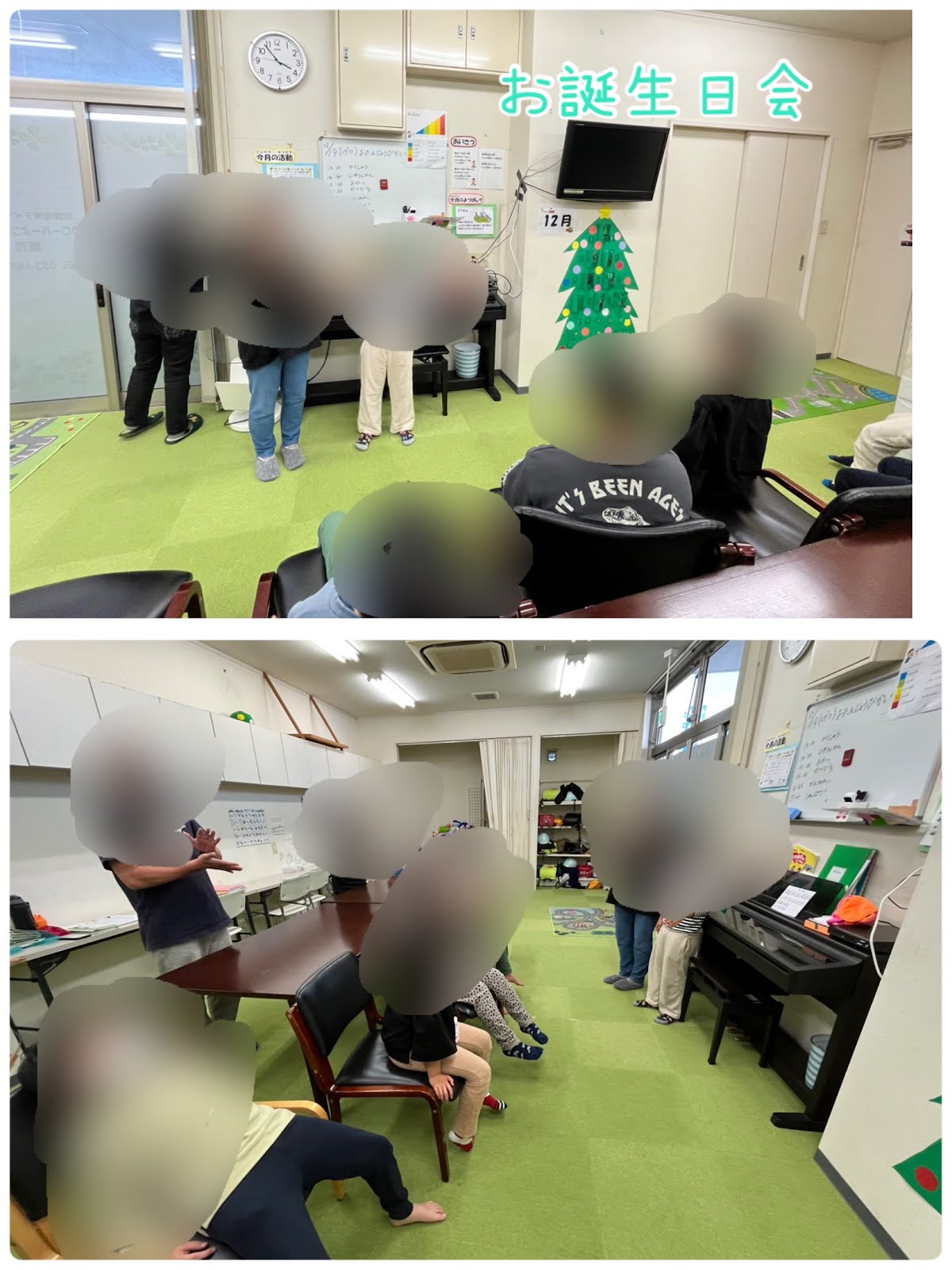 本日の活動は音楽活動でした。「あわてんぼうのサンタクロース」「赤鼻のトナカイ」のクリスマスソングを歌いました♪